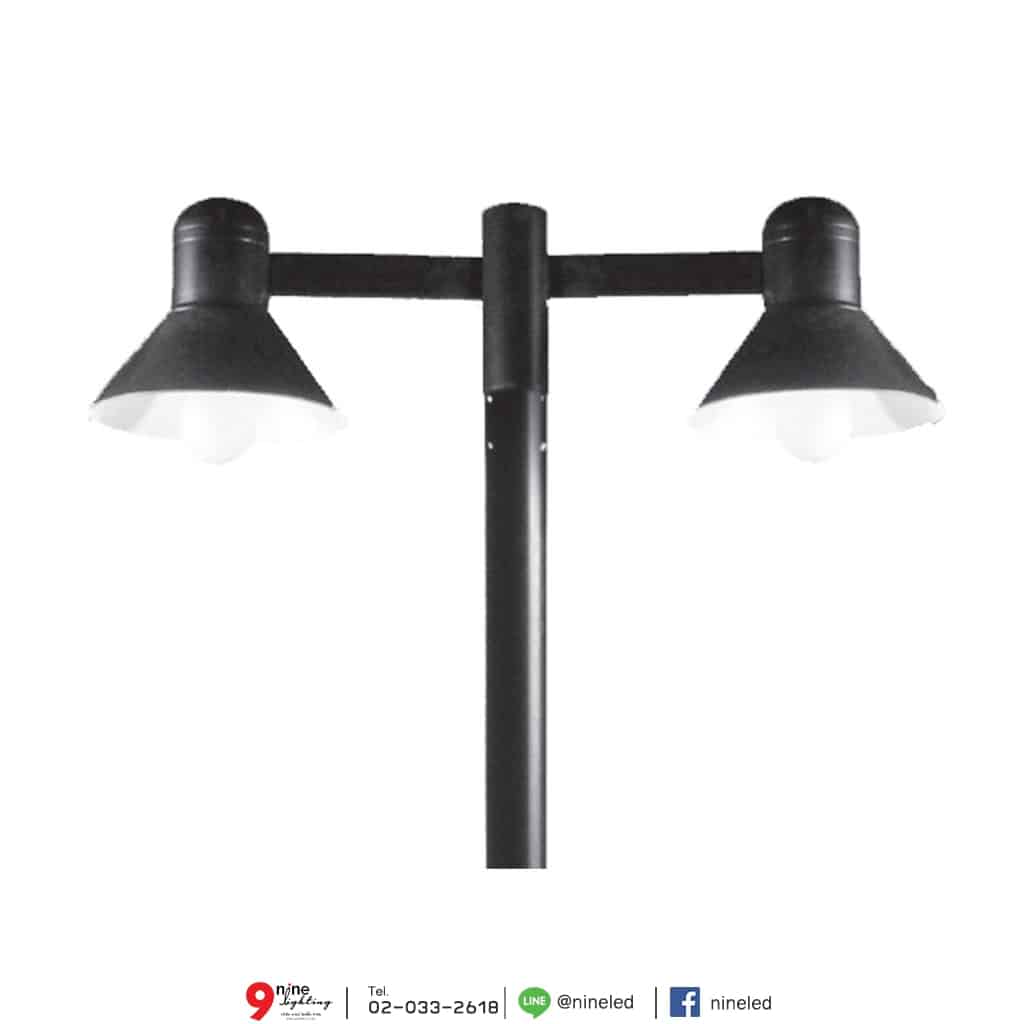เสาไฟสนามหญ้า ทรงฝาชีกิ่งข้าง 2 หัวPOST TOP LUMINAIRE