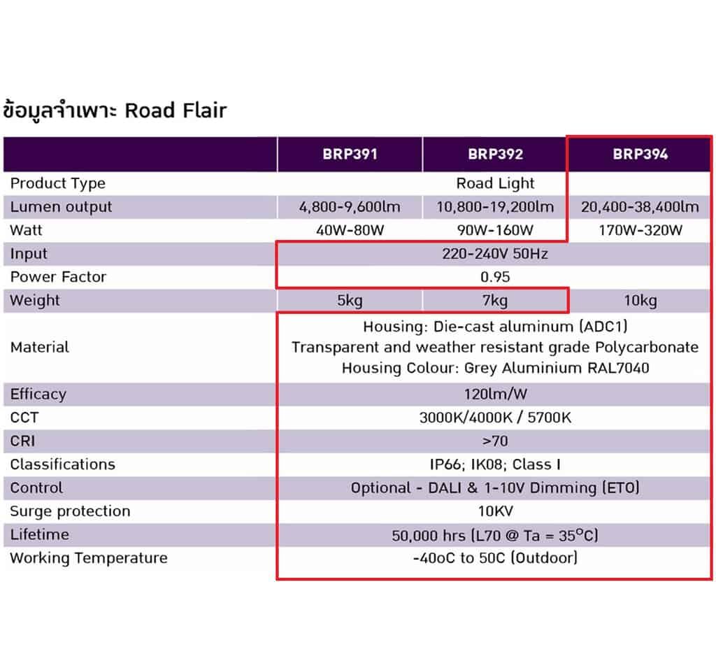 ♦ โคมไฟถนน PHILIPS BRP394 250W ช่วยประหยัดไฟได้มากกว่า 50 เปอร์เซ็นต์ เมื่อเทียบกับโคมหลอดโซเดียม